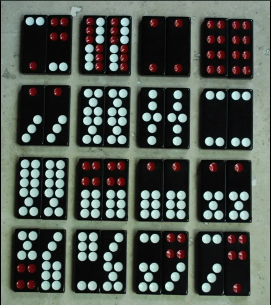 整副骨牌共三十二张,其中一半是“文牌”,一半是“武牌”。
